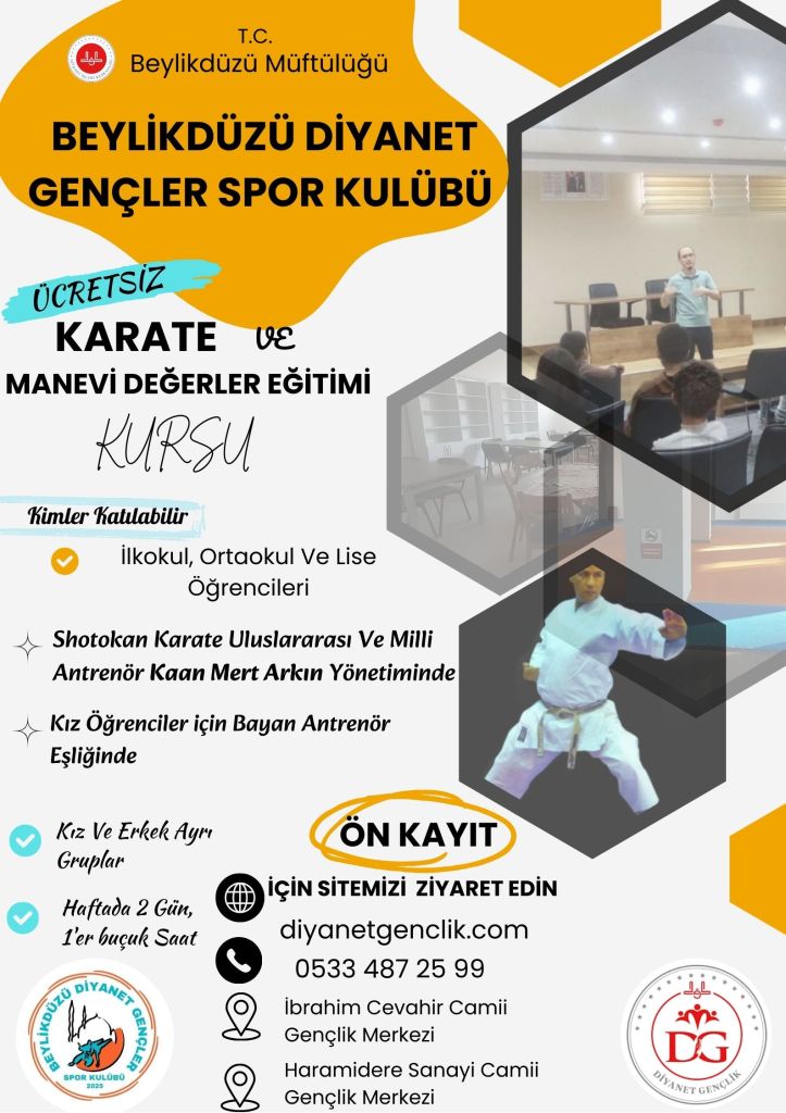 Kız ve erkek ayrı gruplarda düzenlediğimiz kurslarımızda gençlerimizle birebir ilgilenmeye çalışmak esas gayemiz olacaktır. Shotokan Karate uluslararası antrenörü Kaan Mert Arkın hocamızın karate eğitimi vereceği, alanında uzman Diyanet mensubu hocalarımızın milli ve manevi değerler eğitimi vereceği programımıza; ilkokul, ortaokul ve lise seviyesindeki tüm gençlerimizi bekliyoruz.