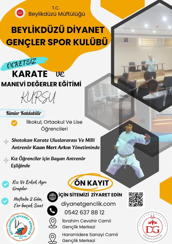 Beylikdüzü Müftülüğü Gençlik Koordinatörlüğü faaliyetleri kapsamında kurulan spor kulübümüz öğrenci kayıtlarını almaya devam ediyor. İbrahim Cevahir camii Diyanet Gençlik Merkezinde ve Haramidere Sanayi Camii Gençlik Merkezinde gerçekleştirdiğimiz faaliyetlerimizde, gençlerimizin bedensel ve zihinsel gelişimlerine, sosyal becerilerine ve kişisel gelişimlerine katkı sunarken, bunlarla birlikte milli ve manevi değerlerini öğrenerek kendisine ve topluma faydalı bireyler olmaları için gayret ediyoruz.